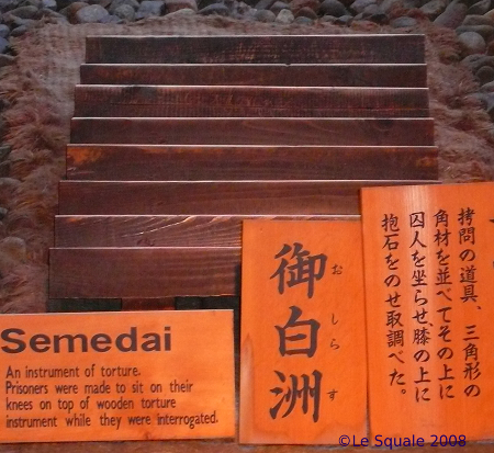 aux flexions avec des cordes (ebizeme) et aux suspensions (tsurizeme), cette progression était graduée du mutchiuchi au tsurizeme jusqu'à ce que le prévenu avoue. Il était cependant autorisé et fréquent de fouetter un prisonnier subissant une torture de rang supérieur. Les techniques de capture et d'attache des prisonniers obéissaient à 4 principes fondamentaux :